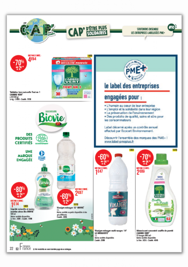 Du 12 au 25 septembre 2022, les magasins Géant Casino mettent en avant les produits des entreprises labellisées PME+ dans le catalogue de l'enseigne.